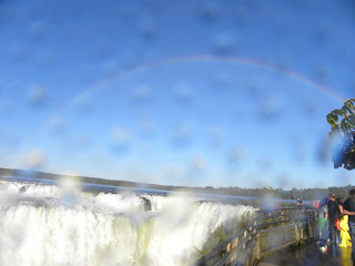 Como havíamos pegado o último trem não foi possível desfrutar por muito tempo... mas foi o suficiente para sentir a grandeza e a força das águas e observar a formação de arco íris. Estes, como bem havia dito a a amiga Edna, formam arco íris de quase 360 graus: