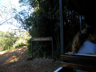 No Parque Nacional Iguazú, há um trem que percorre 2 estações: a Estacion Cataratas e a Estacion Garganta. Fomos direto para a Garganta.