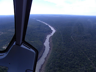 Após o passeio pelas passarelas, tomamos o ônibus turístico e fomos até a Estação Macuco. Trocamos de roupas, pusemos roupas impermeáveis. Tomamos um jipe para chegar até a margem da porção inferior do rio Iguaçú. Neste local iniciou-se o Macuco Safari. Um passeio de lancha até as quedas d'água denominadas por 3 mosqueteiros. São 3 km de navegação, em lancha a motor, até o "batismo". A lancha se aproxima de uma das 3 quedas d'água e somos, literalmente, encharcados.