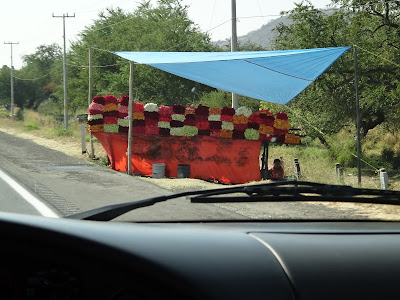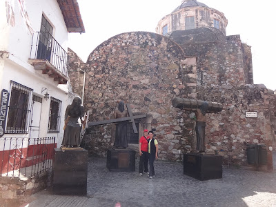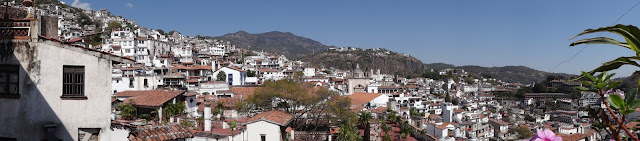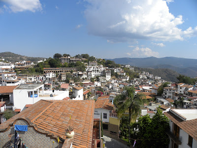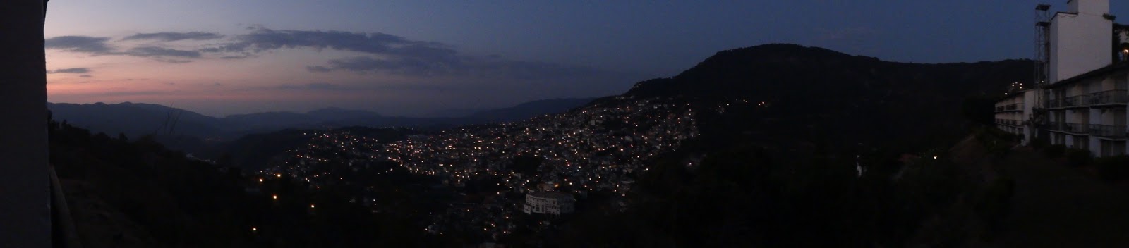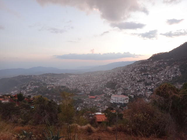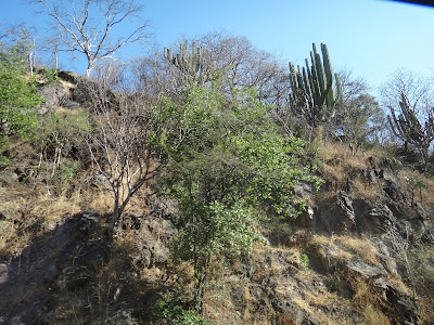Vimos a paisagem mudar de aspecto. Perto de Taxco a vegetação é parece savana. Vimos muitos cactos, todos enormes, alguns possuem um só "galho" outros, denominados por candelabros, com vários "galhos". Atravessamos montanhas e a paisagem deixou de ser árida para se tornar mais tropical.