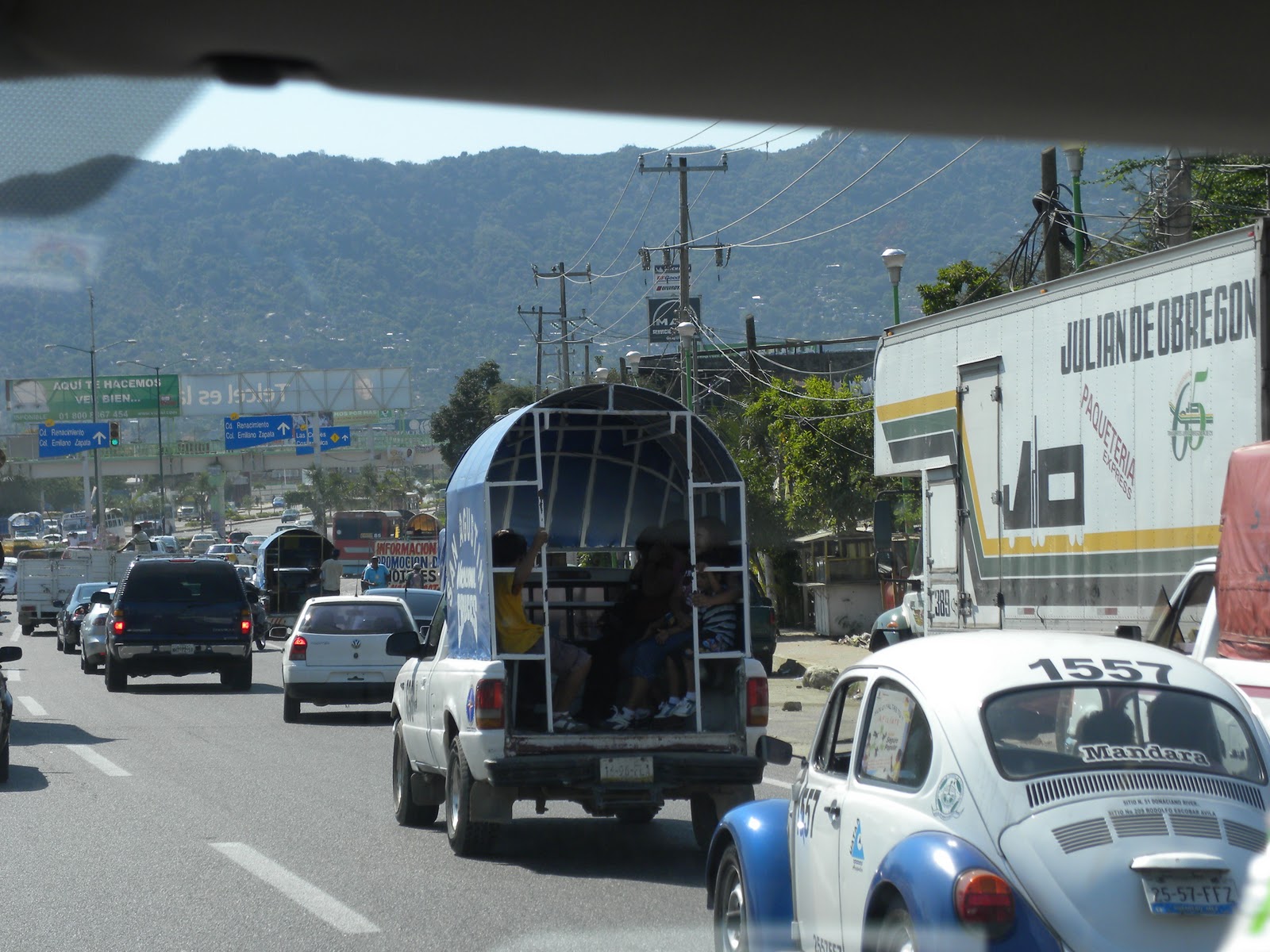 Ao entrar na cidade de Acapulco, pela zona da periferia, vimos os táxis que também são bem práticos.