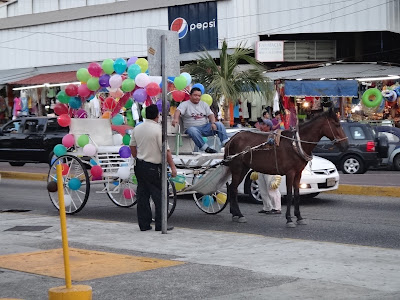 Tiramos uma foto de um "cavalo decorado"... eles andam assim por aqui, cheios de bolas