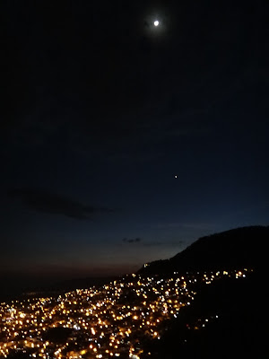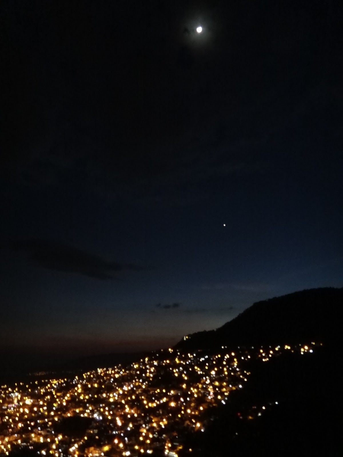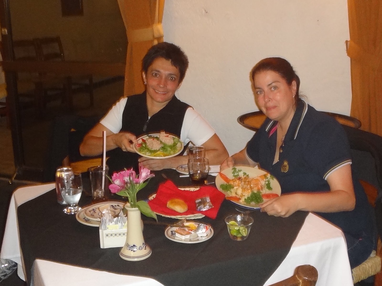 Seguem algumas fotos: nosso jantar, e ao fundo onde os clavadistas pulam