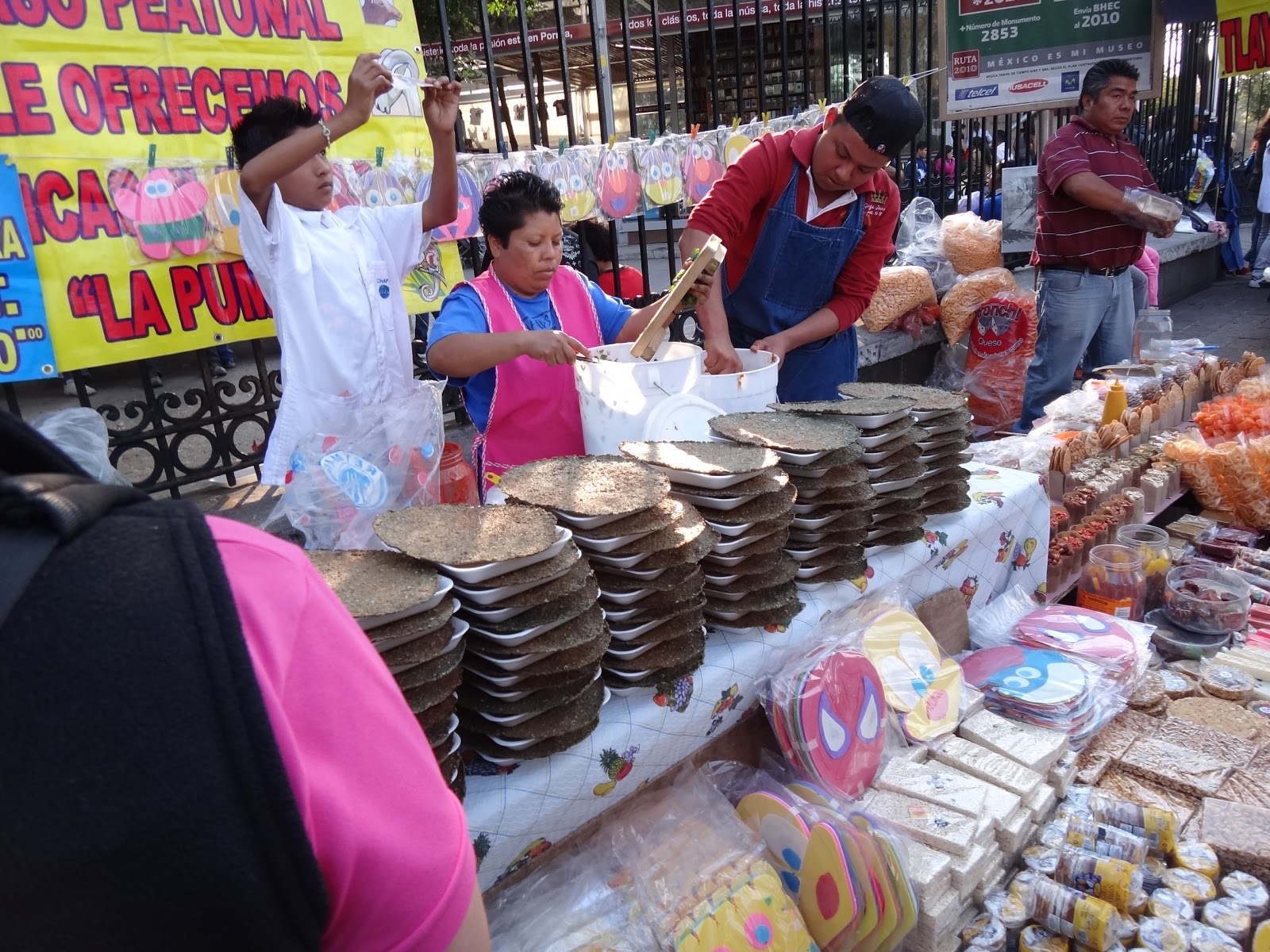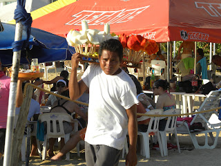 Na praia, o pessoal come umas coisas estranhas também, como frutas no espeto com pimenta e outras cositas más ( na foto aparece manga com pimenta no espeto)