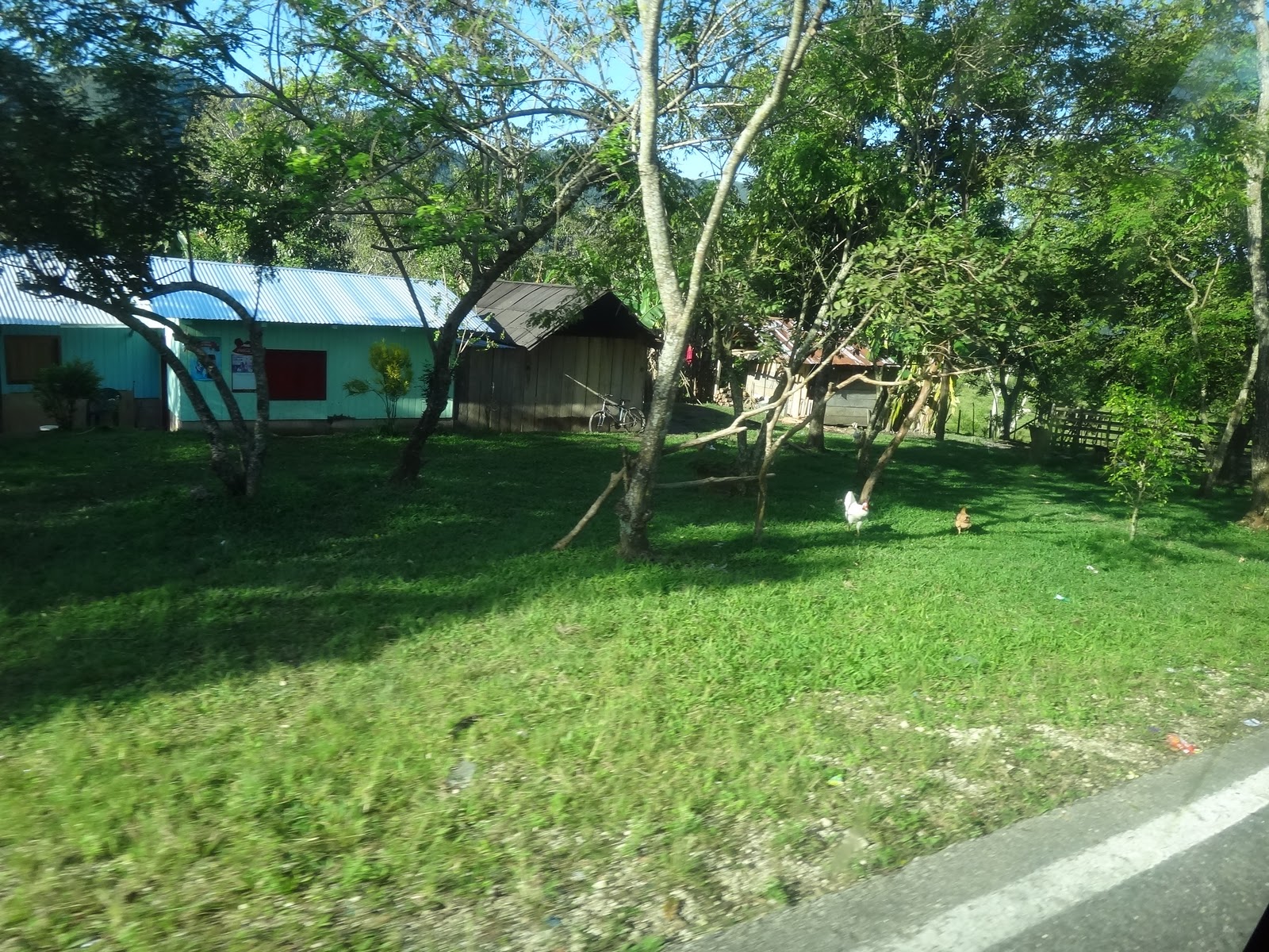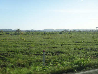 Passamos por plantações de palma (planta vinda da Africa, utilizada para fazer óleo), milho, banana e por alguns pequenos povoados. Tudo emoldurado por selva.