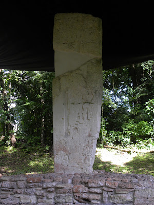 Neste sítio arqueológico também foram encontradas Estelas, bloco monolíticos esculpidos. As esculturas sempre tem alguma relação com o cotidianos ou com deuses. A Estela 1 mostra o Rei olhando para o Leste. Na mão direita uma cabeça decapitada (sempre são de reis os quais venceram em lutas). Tem também esculpido o recipiente que irá conter o sangue. O monarca está em pé em uma representação do inframundo, o que denota seu possível renascimento.