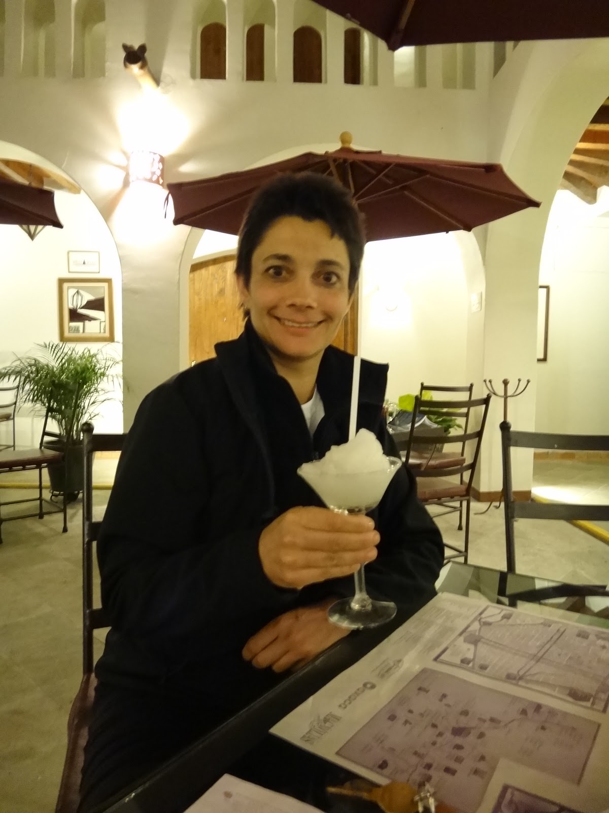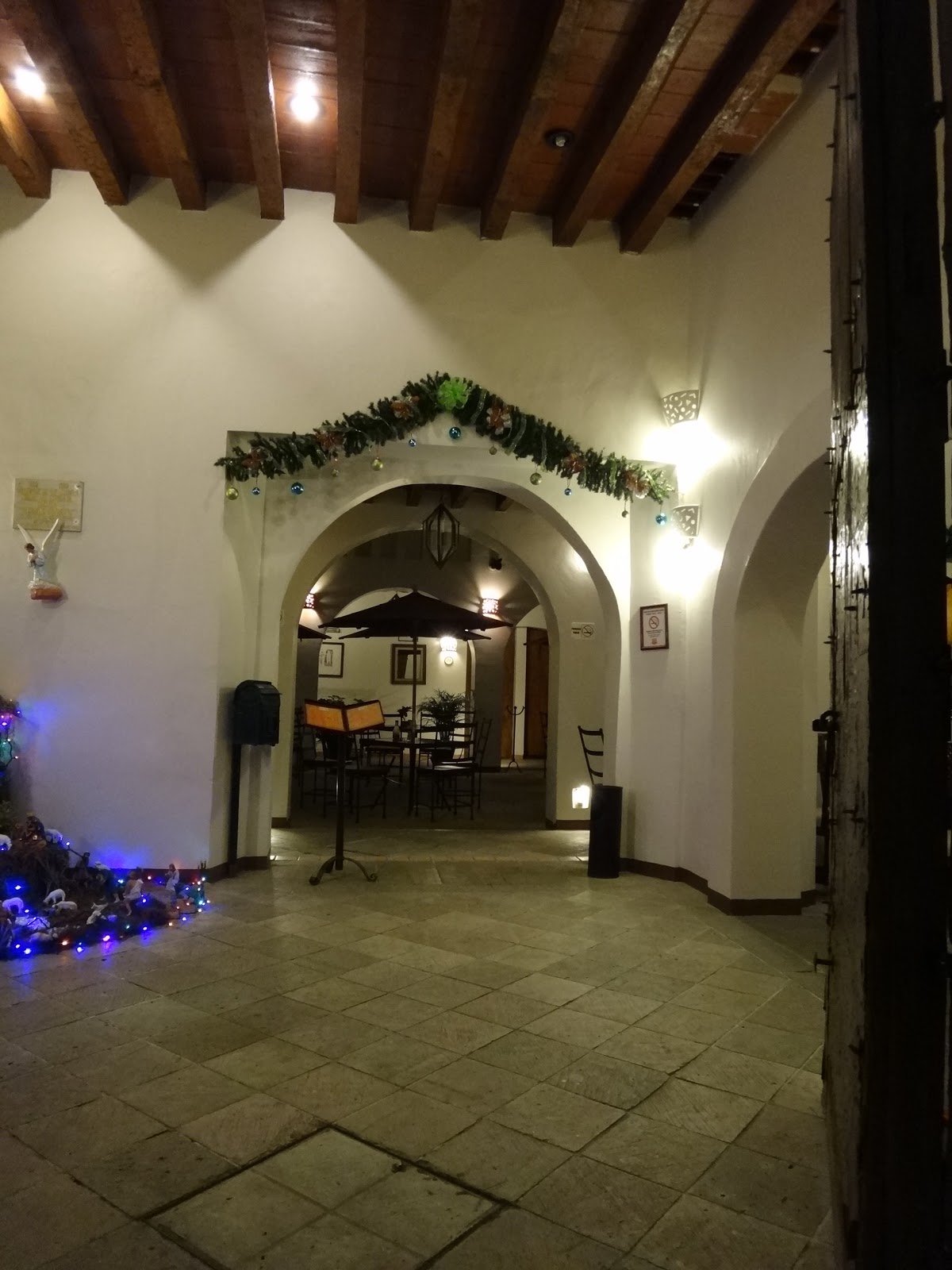 Mas a cidade é linda! O Hotel também! É um enorme casa estilo colonial, com jardins internos, arcos, vigas de madeira aparecendo.