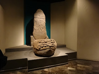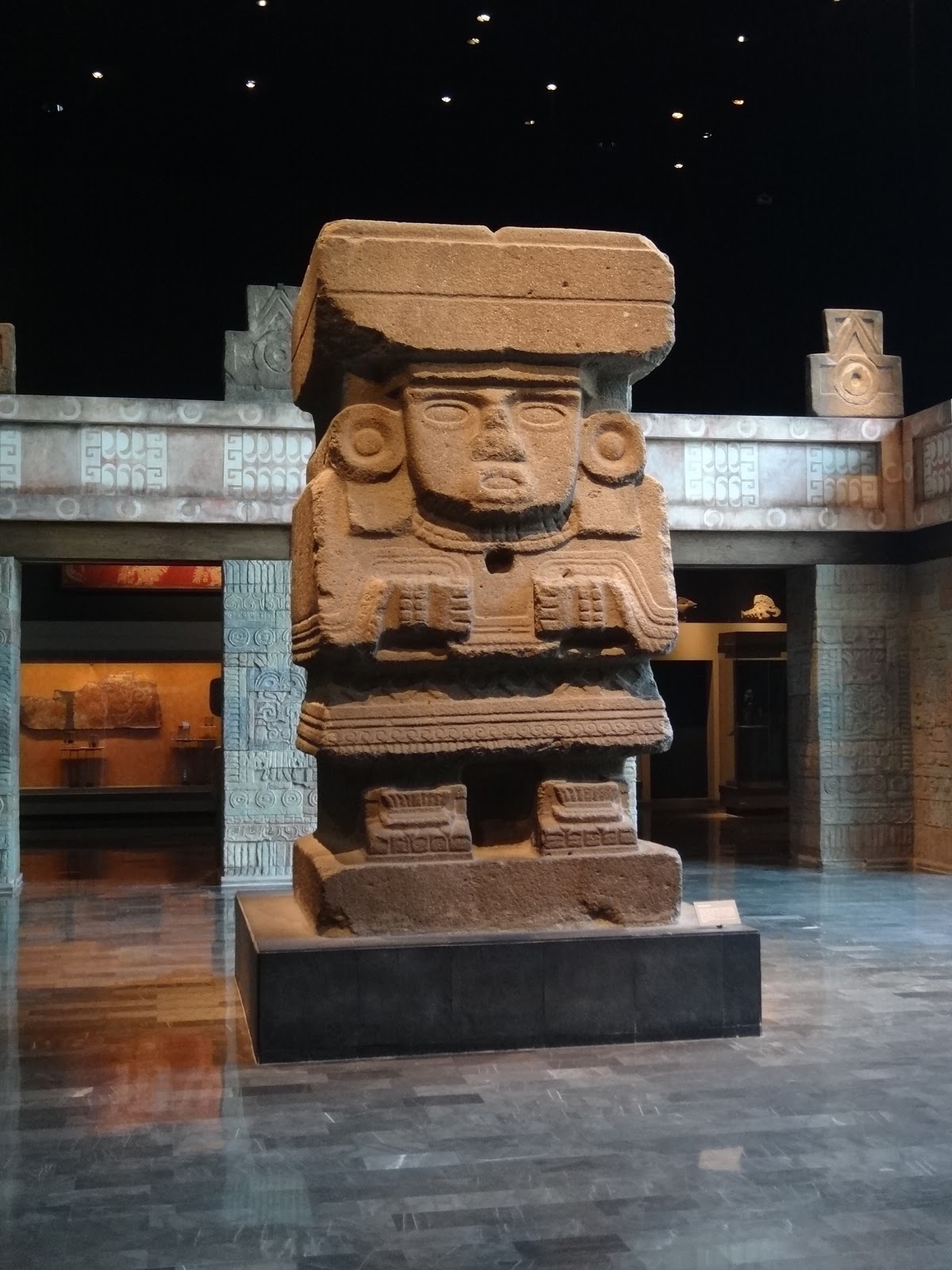 Na entrada tem o Deus da Chuva. Este monolito foi descoberto nos anos 70 ao fazerem escavações próximo à Plaza Mayor (onde hoje está o Zócalo). Ao ser transportado para seu local atual, choveu a beça, uma chuva bem fora de época... deve ter sido a Sua manifestação...